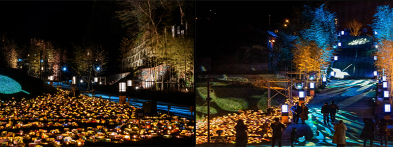 - 나가토 유모토 온천가의 흐르는 오토노부 강을 무대로 펼쳐지는 환상적인 등불 이벤트