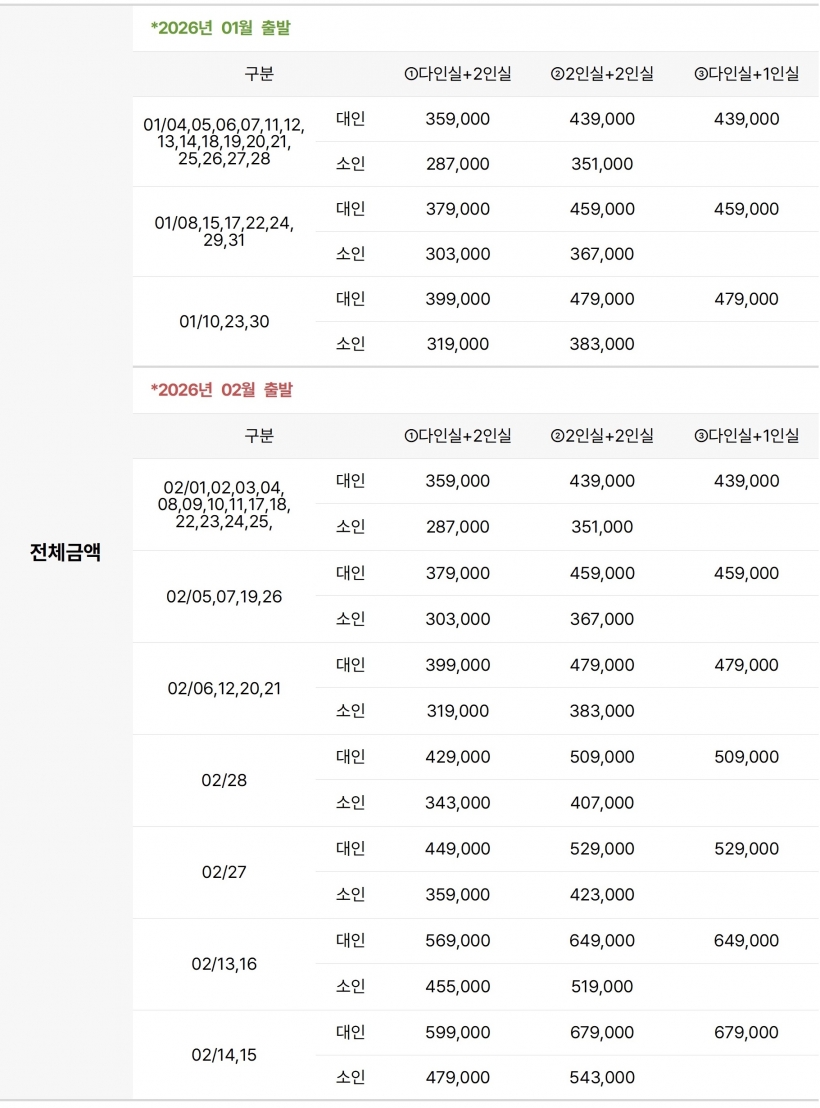 | ·출발일 | ~26년 02월 출발까지 / 연중 매일 출발 |