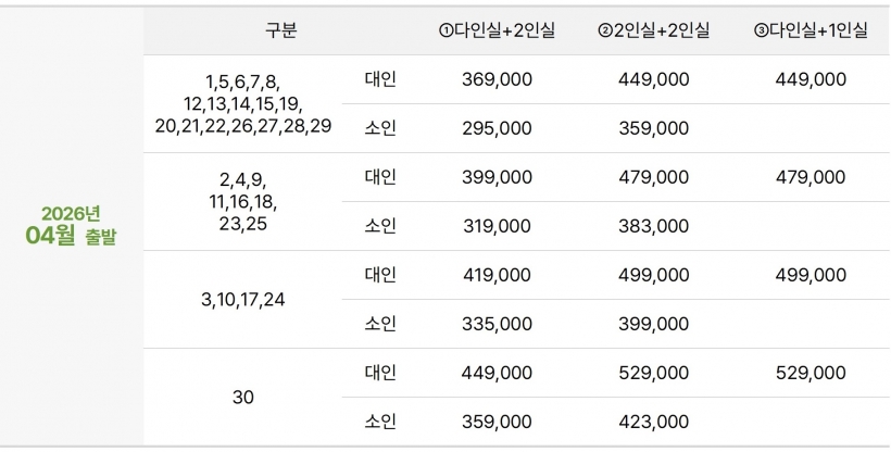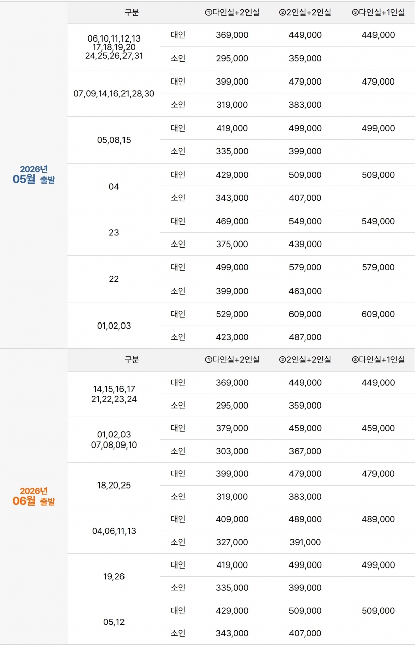 | ·출발일 | 연중 매일 출발 |
