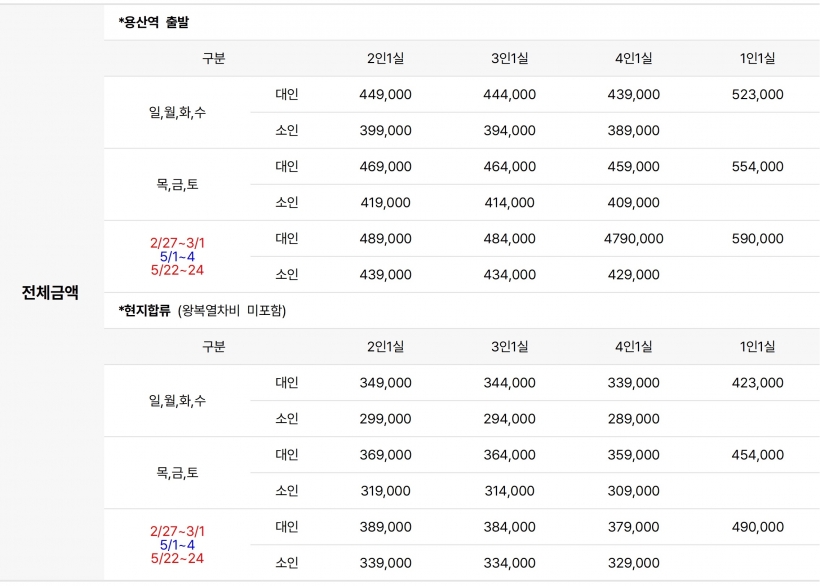 * 유아동반/소인 예약시 상담원 확인 후 결제 진행부탁드립니다