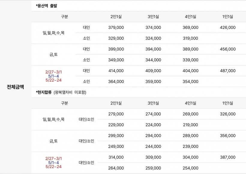 | ·출발일 | 연중 매일 출발 |