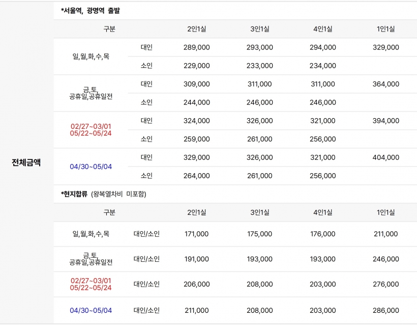 | ·출발일 | 연중 매일 출발 |