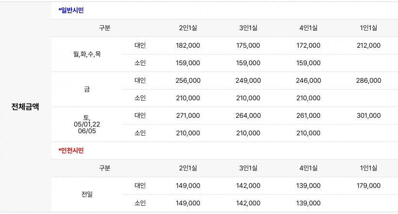 ※ 선박좌석은 선사임의배정으로 선박사정에 따라 일행이라도 좌석이 떨어질수 있습니다.