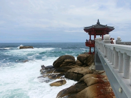 [영금정] - 파도가 바위에 부딪치면 신묘한 거문고 소리가 난다고 해서 붙여진 이름 - 일제시대때 방파제를 짓는 골재 채취를 위해 폭파 되었지만, 그 위에 옛소리를 아쉬워하는 마음을 담아 만들어낸 정자 |