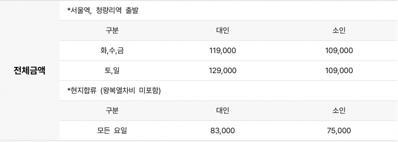 | ·출발일 | 26년 4월 7일 ~ 26년 6월 27일 / 화,수,금,토,일 |