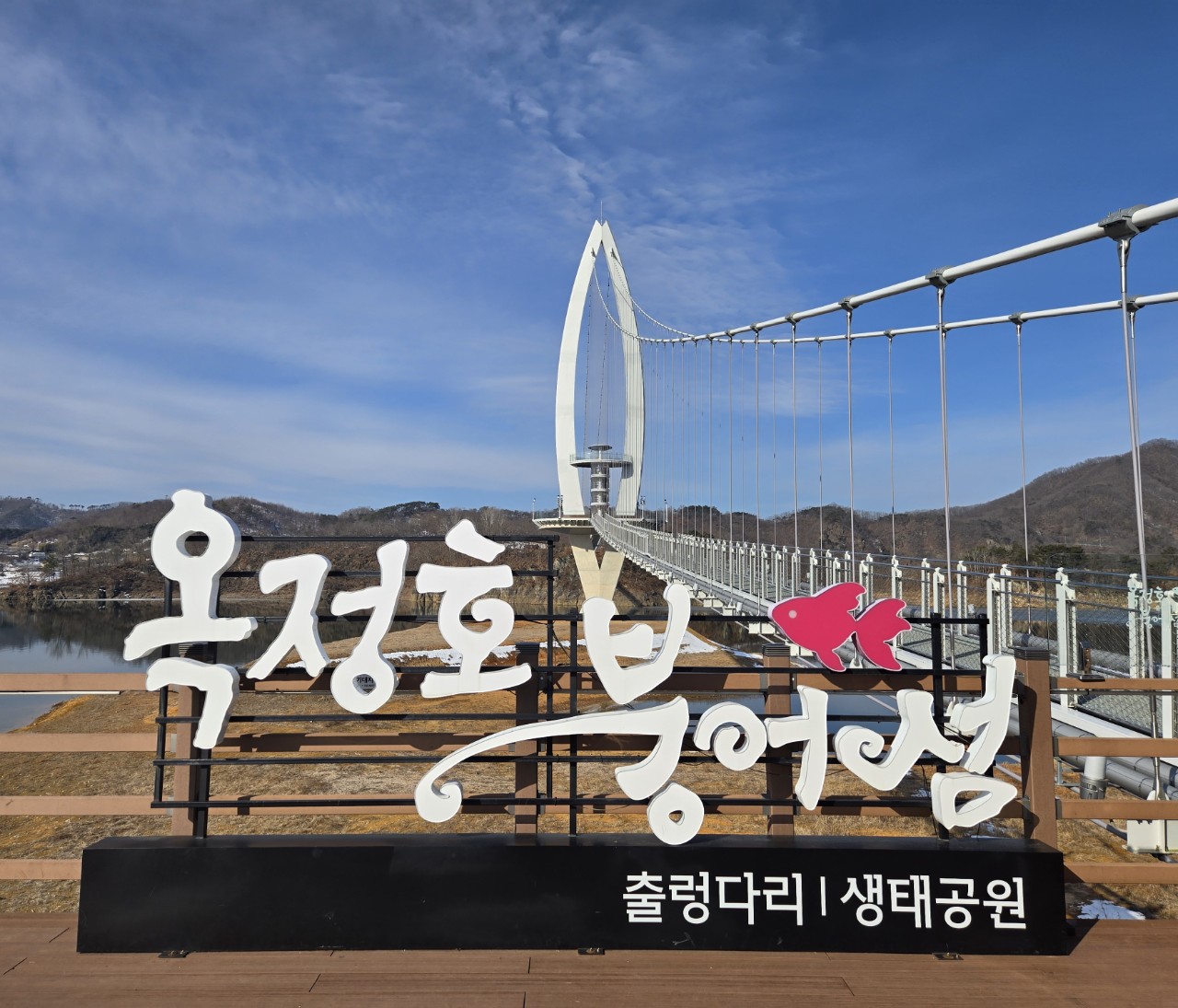 옥정호 출렁다리 및 붕어섬생태공원은 붕어섬을 거쳐 출렁다리를 건널 수 있다. 요산공원에서 붕어섬까지 이어주는 출렁다리는 총길이 420m, 순폭 1.5m이다. 붕어를 형상화한 높이 83.5m의 주탑과 스테인리스 매쉬형 난간 그리고 스틸그레이팅 바닥판은 시원한 바람과 짜릿함을 경험할 수 있다.